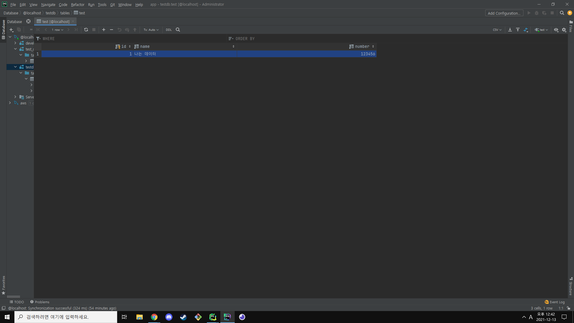 POST로 호출해 데이터가 저장이 되었는지 확인하기 위해 데이터 베이스를 한 번 확인해보겠습니다.