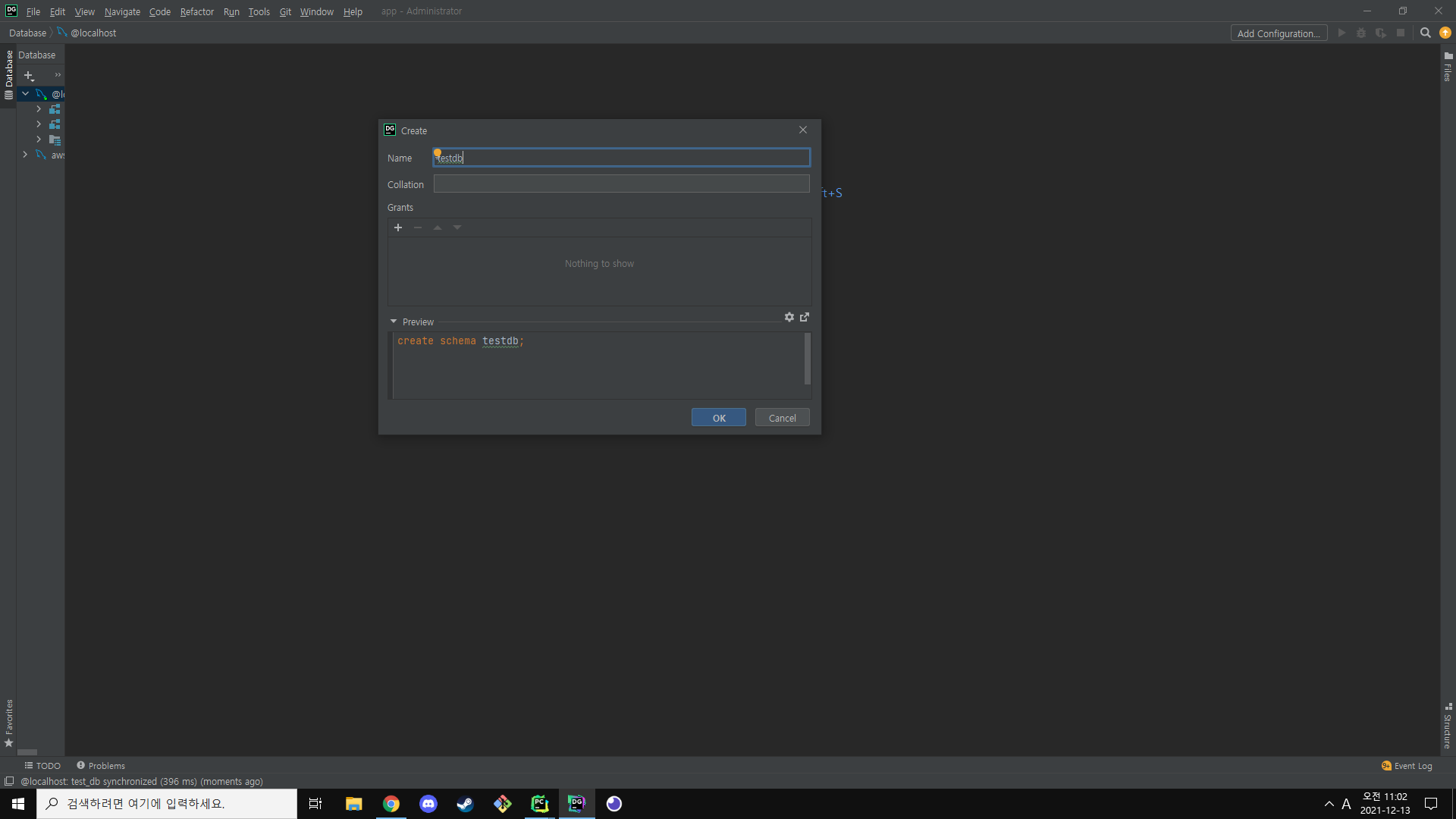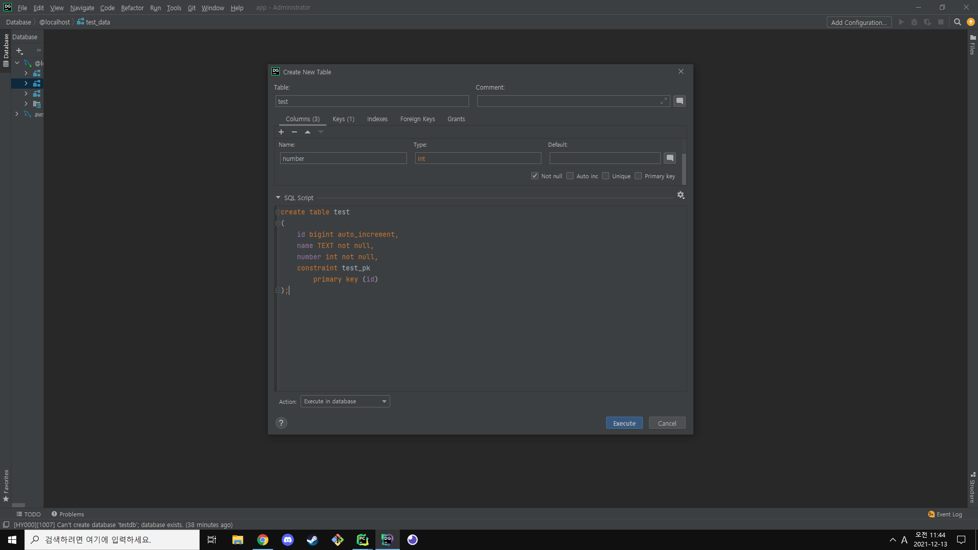 데이터 베이스를 만들고 테이블을 생성해줍니다.