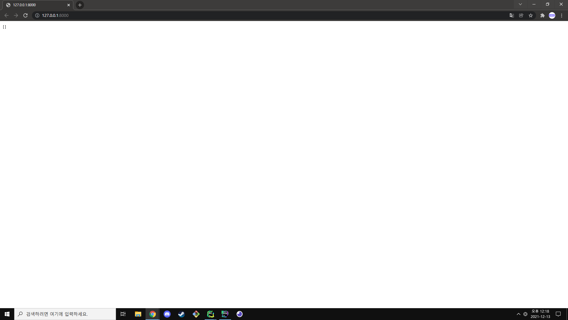 정상적으로 호출이 된다면 데이터 베이스에 아무런 데이터가 없기에 [ ] 비어있는 값으로 출력이 될텐데 이제 우리는 데이터베이스에 POST를 이용해 데이터를 만들어 보도록 하겠습니다.