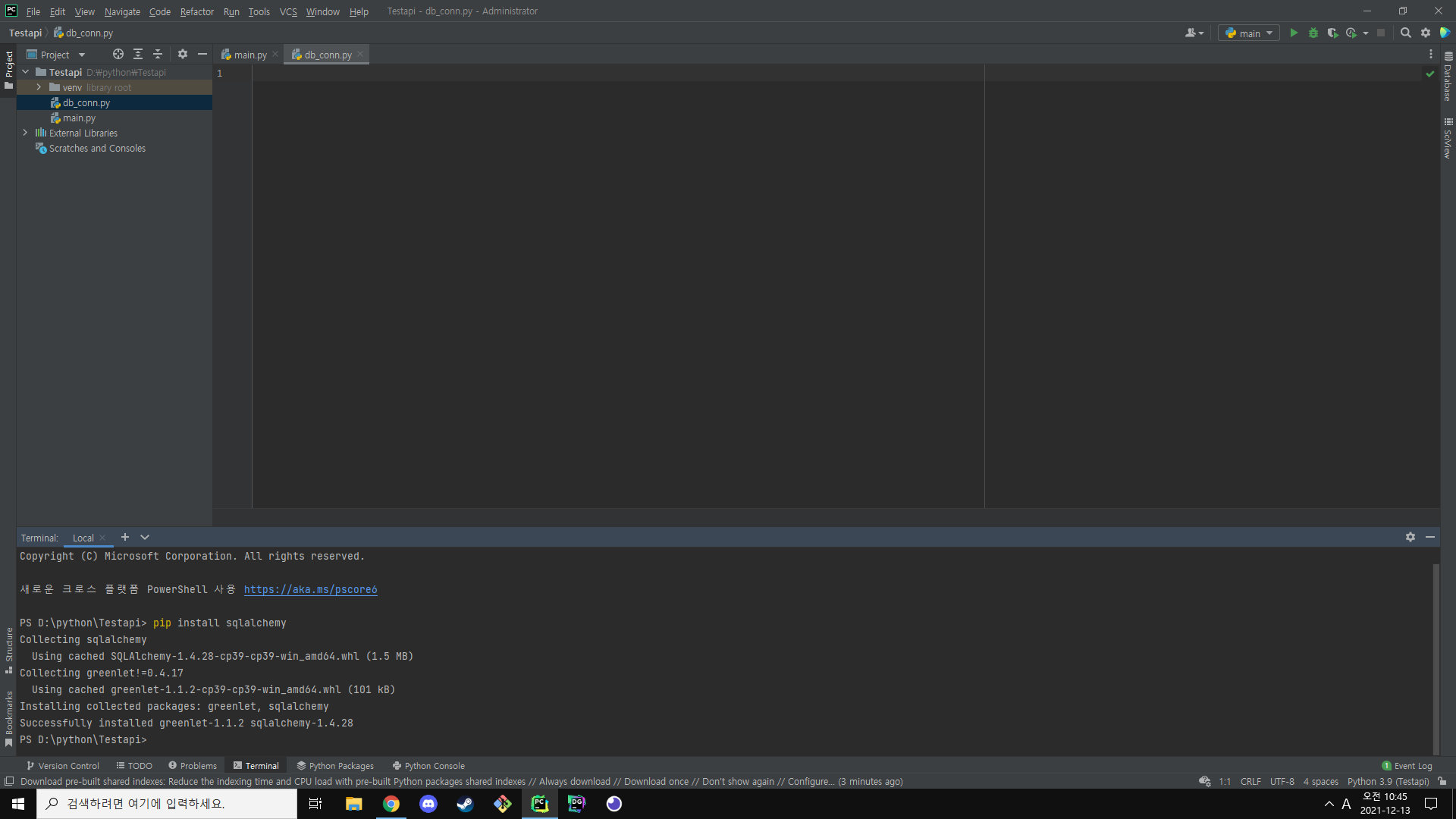 그 다음 SQLAlchemy 라이브러리를 다운로드 받아서 가져와야되겠죠?